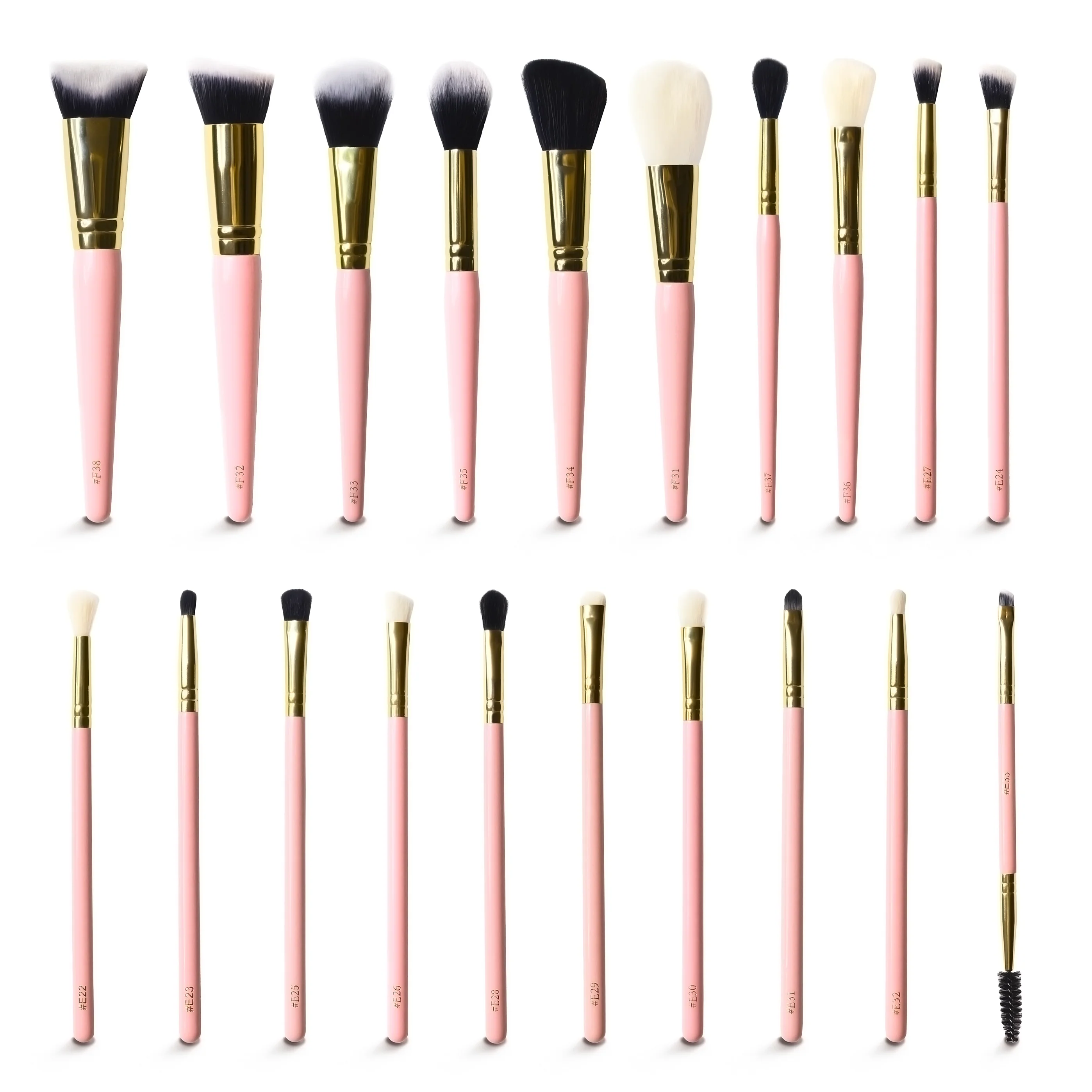 - E24 medium angled multi-brush = a medium angled multi-use buffing brush. Perfect for blending both creams and powders on the eye.